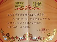 • 先進黨支部證書
